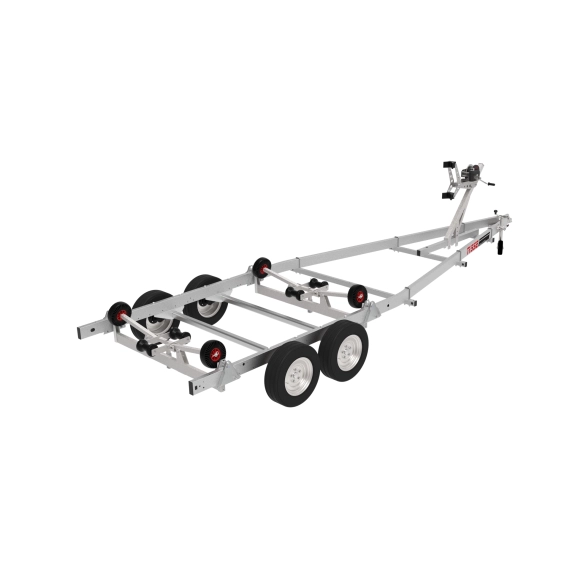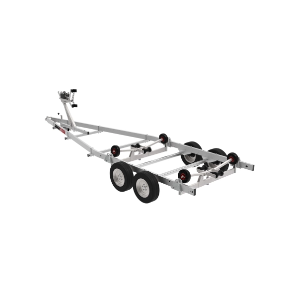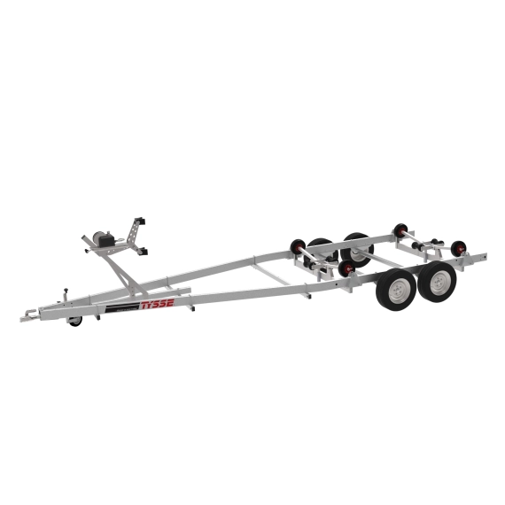 Opplagshenger 6684S03 er et kraftig alternativ for større fritidsbåter. Sjøvannsbestandige hjul gjør sjøsetting og opptrekk enkelt, mens baugstøtte og aksler kan justeres for optimal stabilitet. De selvjusterende sidestøttene og slitesterke kjølrullene gir trygg og nøyaktig sentrering av båten. Passer båter opptil 23 fot – med 7 års garanti.