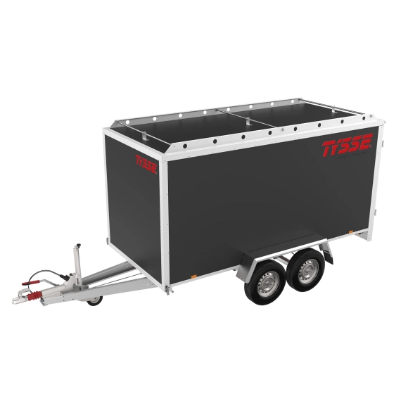 Tysse skaphengere er blant markedets kraftigste, og skapet er bygget av 12mm finèrplater med solide aluminiumslister. Kraftige karmer rundt bakdører stiver av skapet ytterligere. Platene har en kjerne av bjærkekryssfiner som er belagt med glatt og blank ABS-basert overlegg. Dette gir en overlate som er svært enkel å rengjøre, og også godt egnet til dekor om dette ønskes. Tysse skaphenger har nedfelte surrefester i stålskinner. Disse er nedfelte og kommer dermed ikke i konflikt med last. Vær obs på at oppgitt kassemål er innvendige mål og at selve lysåpning i døråpning er ca 10 mindre grunnet dørkarm. Takrails er standard og er beregnet på ca 50kg jevnt fordelt last.