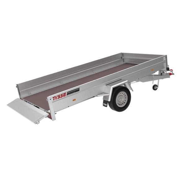Oppdag Tysse 6258, en tilhenger som kombinerer brukervennlighet og robust design med smarte løsninger som gjør jobben enklere og mer effektiv. Tilhengeren er ideell for gjør-det-selv-prosjekter, som snøscootergarasje, til fritidsaktiviteter og proffbrukere. Med stort kassevolum, høy nyttelast og tippfunksjon kan du enkelt kjøre gressklipperen, hagemaskinen, snøscooteren eller ATV-en rett opp på lasteplanet, vippe opp tilhengeren for å tømme grus eller jord direkte på ønsket sted, og frakte hageavfall eller flyttelass. Den forsterkede bakkarmen gir ekstra stabilitet og brukervennlighet, uansett oppgave.