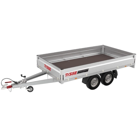 Modellen er også utstyrt med surreskinner foran, bak og langsgående for best mulig sikring av lasten. Hvert surrefeste er godkjent for 600 kg. Husk å bruke CE-merkede lastestropper for din egen sikkerhet og for alle dine medtrafikanter. Med nedfellbare sidekarmer og en nyttelast på opptil 2138 kilo gir denne tilhengeren mye funksjonalitet og fleksibilitet.